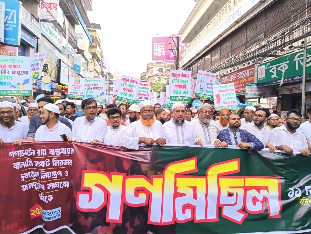 সমাবেশে বক্তব্য রাখেন মহানগর জামায়াতের নায়েবে আমির প্রফেসর মাহমুদ হোসাইন দুলাল, সহকারী সেক্রেটারি হাফেজ মাওলানা আতিকুল্লাহ, এনসিপির বরিশাল জেলা আহবায়ক আবু সাঈদ মুসা, এনসিপি কেন্দ্রীয় নির্বাহী সদস্য রফিকুল ইসলাম কনক, লেবারপার্টি মহানগর সভাপতি এসএম সোহেল মাহমুদ, এবি পার্টির সুমন তালুকদার সহ ১১দলীয় ঐক্যের জেলা ও মহানগর নেতৃবৃন্দ। অনুষ্ঠান সঞ্চালনা করেন মহানগর জামায়াতের সেক্রেটারি মাওলানা মতিউর রহমান। সমাবেশ শেষে বিশাল এক বিক্ষোভ মিছিল টাউনহল থেকে শুরু হয়ে সদর রোড, ফজলুল হক এভিনিউ, চকবাজারসহ নগরীর প্রধান প্রধান সড়ক প্রদক্ষিণ করে।